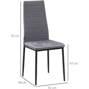 Complete your kitchen or dining area in matching style, thanks to this four-piece chair set from HOMCOM. Seats are cushioned for comfort, with high backs for support. Linen-look upholstery is smooth and in style. Steel legs for full support when seated.