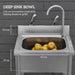 - Deep Sink Design: Large basin fits buckets, cooking pots, and tools with minimal splashing.