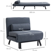 1 Person Futon Sofa Bed, Foldable, Portable Pillow, Grey