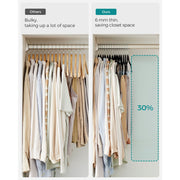 - Slim and Space-Efficient Design: Each hanger is only 0.6 cm thick, allowing you to maximise your wardrobe space. Now, you can hang more skirts, trousers, and scarves without overcrowding your closet.