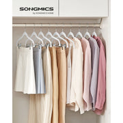Elevate your wardrobe organisation with SONGMICS White Velvet Hangers with Clips. Designed for versatility and elegance, these hangers offer a sleek solution to keep your clothes neatly arranged and free from damage.