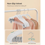 Transform your closet with these SONGMICS White Velvet Hangers with Clips, offering a stylish, efficient, and space-saving solution for all your hanging needs.