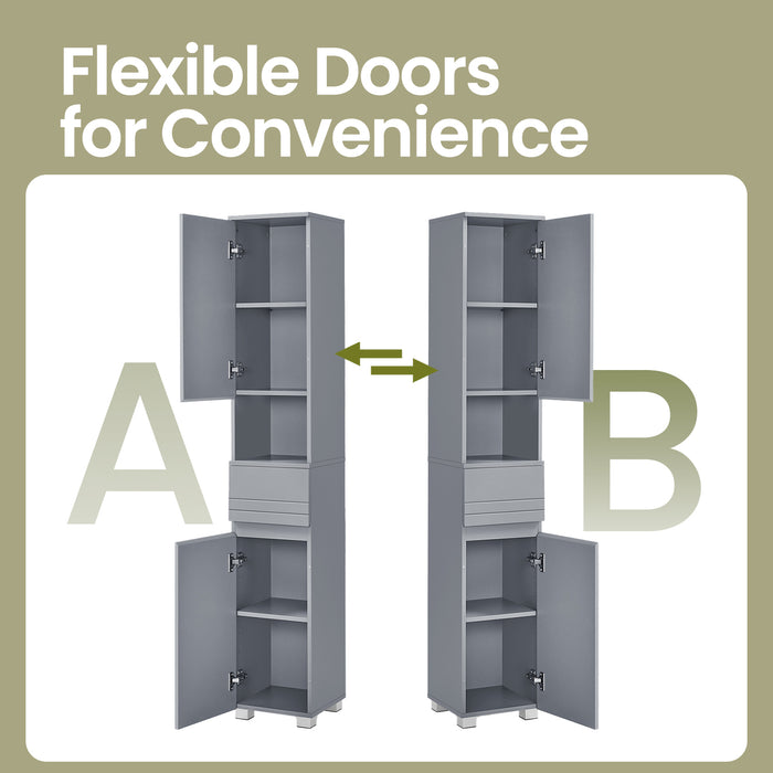 Tall Slim Grey Bathroom Storage Cabinet with Shelves for Small Spaces by Vasagle