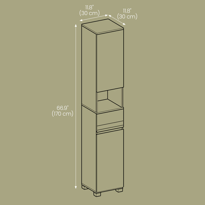 Tall Slim Grey Bathroom Storage Cabinet by VASAGLE