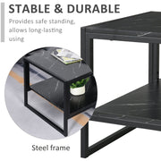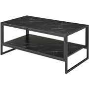 Bringing a sleek and exciting twist to an everyday home furnishing piece, this coffee table from HOMCOM is perfect for updating your space instantly. Its two-tier design ensures it will give you plenty of room for storing and holding what you need, with the metal frame ensuring it is strong and sturdy for everyday use. Both table tops are made into a black and laminate marble print table top finish for a beautiful look which looks great placed almost anywhere.
