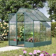 Introducing the Outsunny Large Polycarbonate Greenhouse – a dream come true for any avid gardener! With no fixed shelves or railings inside, this greenhouse allows complete customisation to suit your needs. The UV 30um resistance ensures harsh sunlight is filtered, while vital nutrients penetrate the metal frame. A smart, temperature-controlled window opens and closes automatically to regulate the internal temperature. Sturdy and reliable, with a detachable aluminium foundation for easy installation, this greenhouse is an excellent investment for anyone who loves gardening.