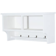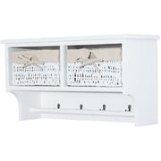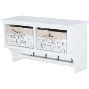 This HOMCOM wall mounted storage shelf is a great item to have in your entry or hallway for your home or office. It comes in a modern design with four metal hooks to hang your coats and two cube shelves with two pullout wicker baskets. These will be a great place to store your gloves, scarves bags and more. The unit gives you ample storage and will be an ideal solution to match your home or office decor.