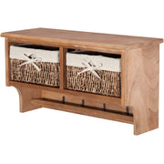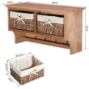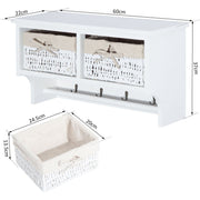 Entryway Wall Coat Rack 2 Wicker Baskets, Hooks