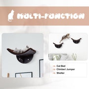 Brown Wall-Mounted Cat Shelf Bed w/ Fleece Cushion