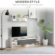 White & Grey TV Cabinet with Wall Shelf and Storage