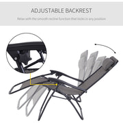 Take your sun relaxation time to the next level with this zero gravity outdoor chair from Outsunny. Evenly distributing your weight, it lifts you up from the floor for total relaxation, whenever. Made from sturdy steel in a powder coated finish, the frame is strong and resistant to peeling. The back reclines to lean back easily, with a padded headrest for comfort. The gateway to relaxing in the garden, patio or balcony.